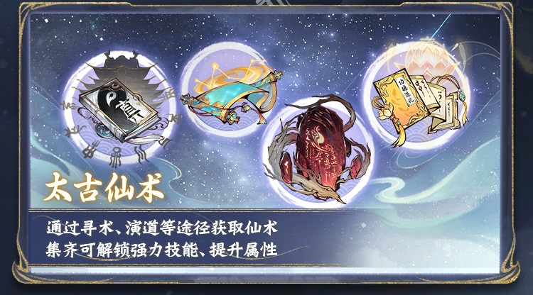 新玩法太古仙术上线,三清道生道灭,浩然圣贤天承,大荒开天辟地,金禅护体无伤,四大派系各有特色,真仙对应境界及以上玩家可解锁体验,集齐仙术,解锁强力技能,可提升自身属性。