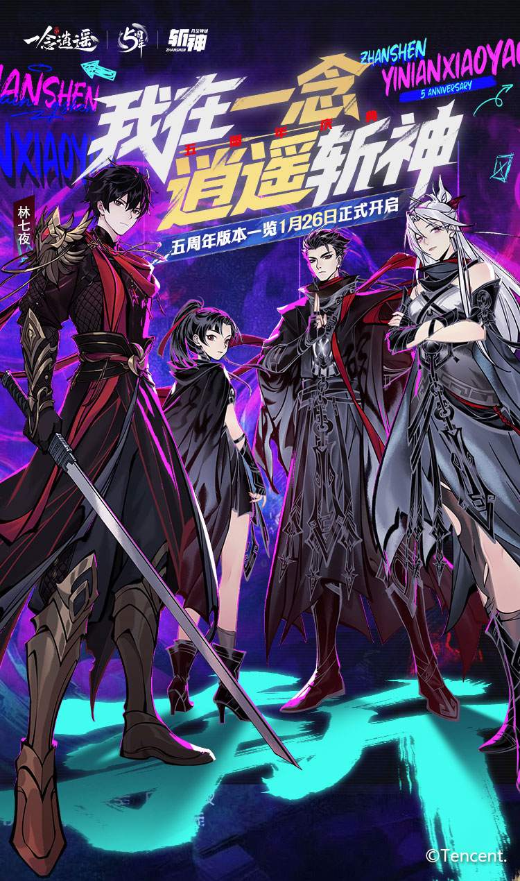 五周年大型活动“一念斩神”将于1月26日开启,全新时装“天命星轨”上线;玩家在指定日期登录,可免费领取新时装“黯夜守望”。