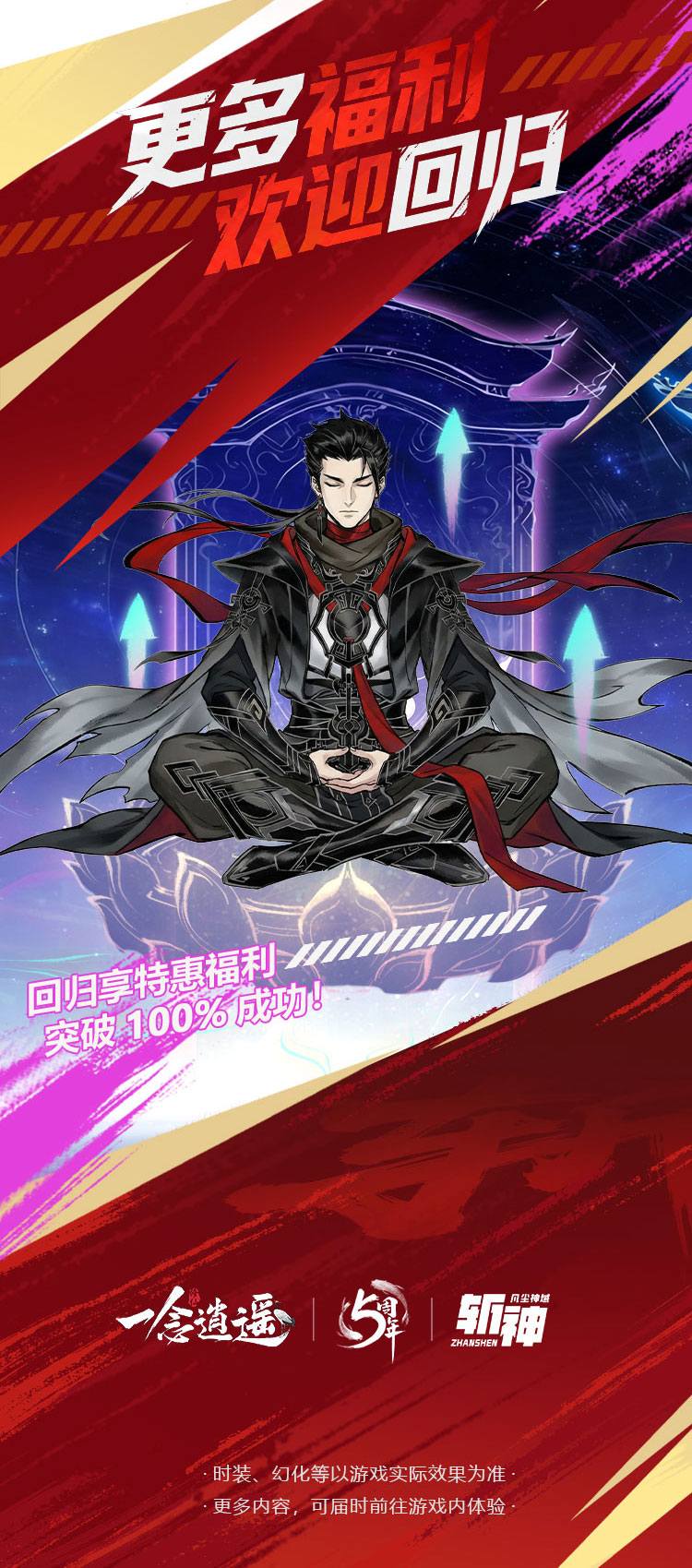 五周年回归体验优化,《一念逍遥》延长了再续仙缘活动时长,优化了玩家回归体验,并加码了回归福利,最佳回坑时机就在五周年庆!