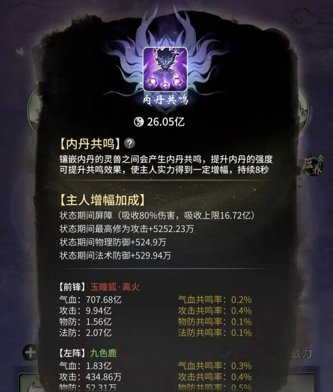 修士新增内丹共鸣专属神通可将其编入神通序列,按策略顺序施放施放后持续时间内,将为修士附加屏障并大幅强化修士的攻击与防御属性